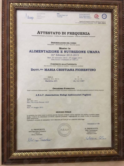 Dr.ssa Maria Cristiana Fiorentino, Biologa Nutrizionista
