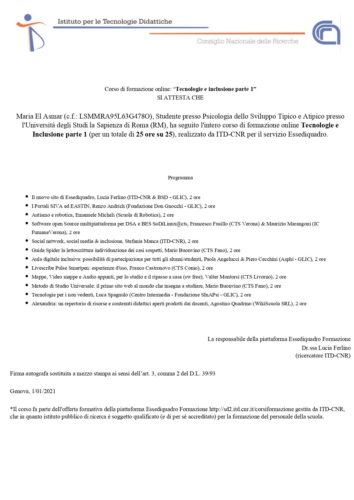 Dott.ssa El Asmar Maria