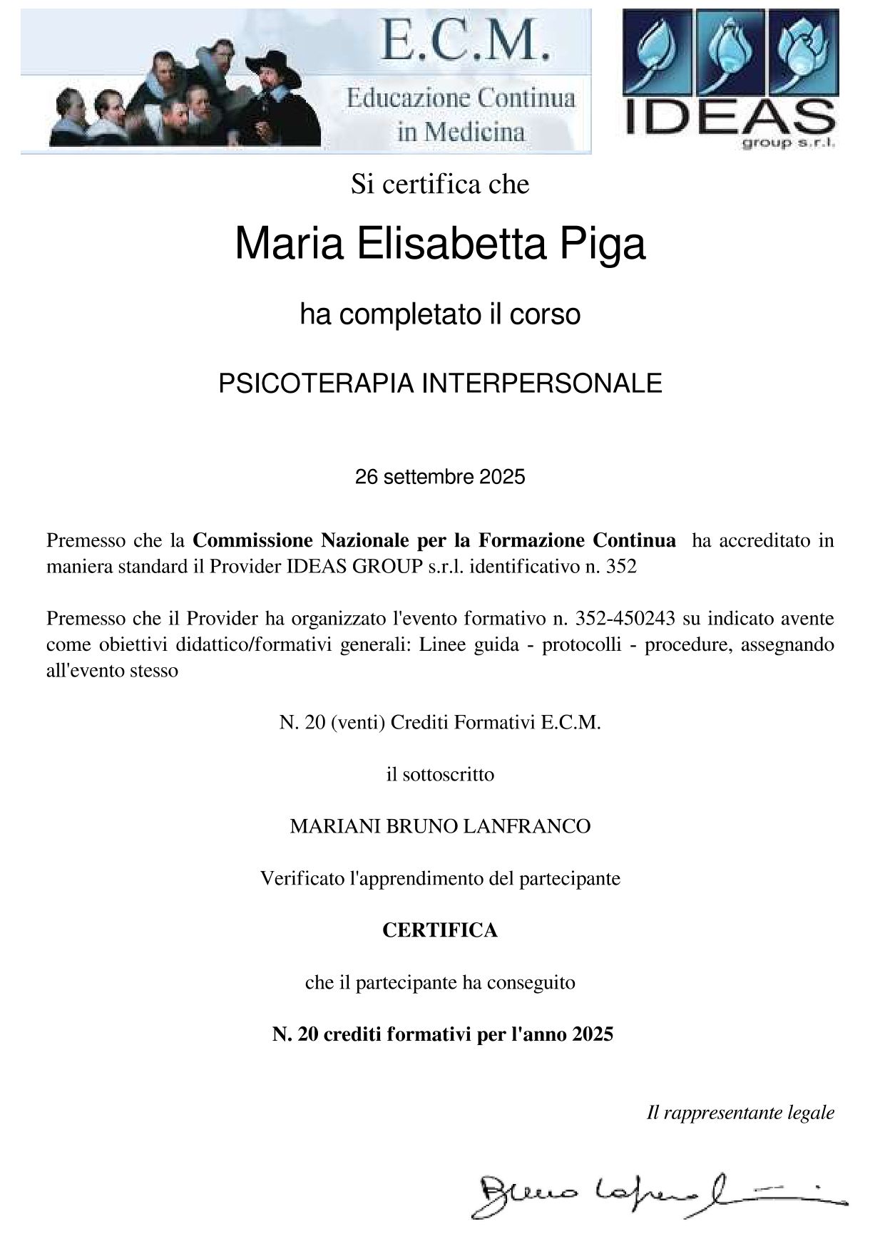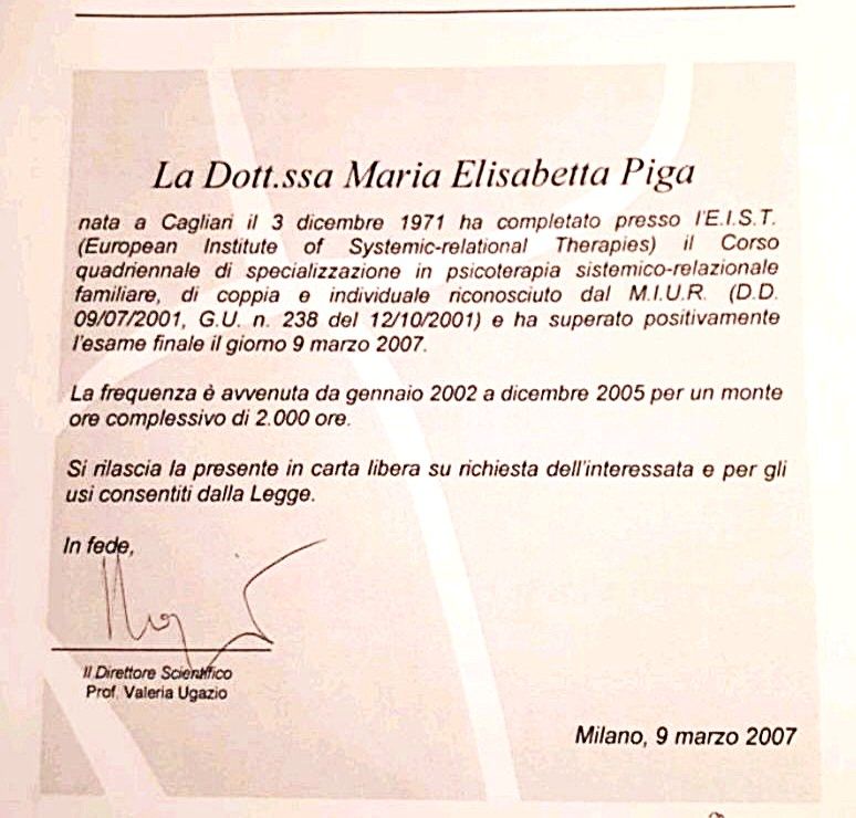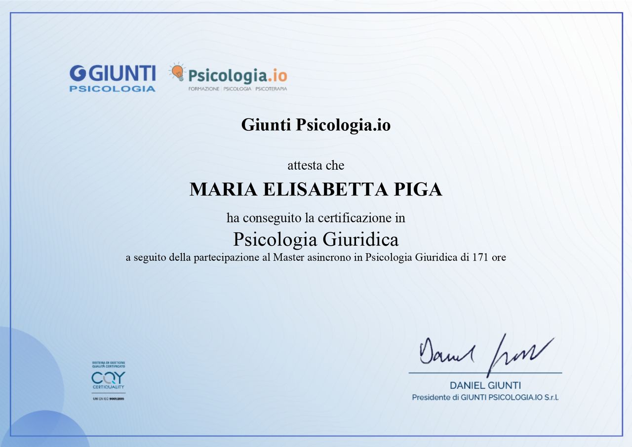 Sono psicologa e psicoterapeuta sistemico-relazionale, specializzata nel lavoro con individui, coppie e famiglie. Dopo oltre dieci anni di esperienza clinica, recentemente ho ampliato la mia formazione con corsi di formazione in psicoterapia breve cognitivo-comportamentale e interpersonale e con un master in psicologia giuridica, che mi abilita ad operare anche come Consulente Tecnico di Parte (CTP).