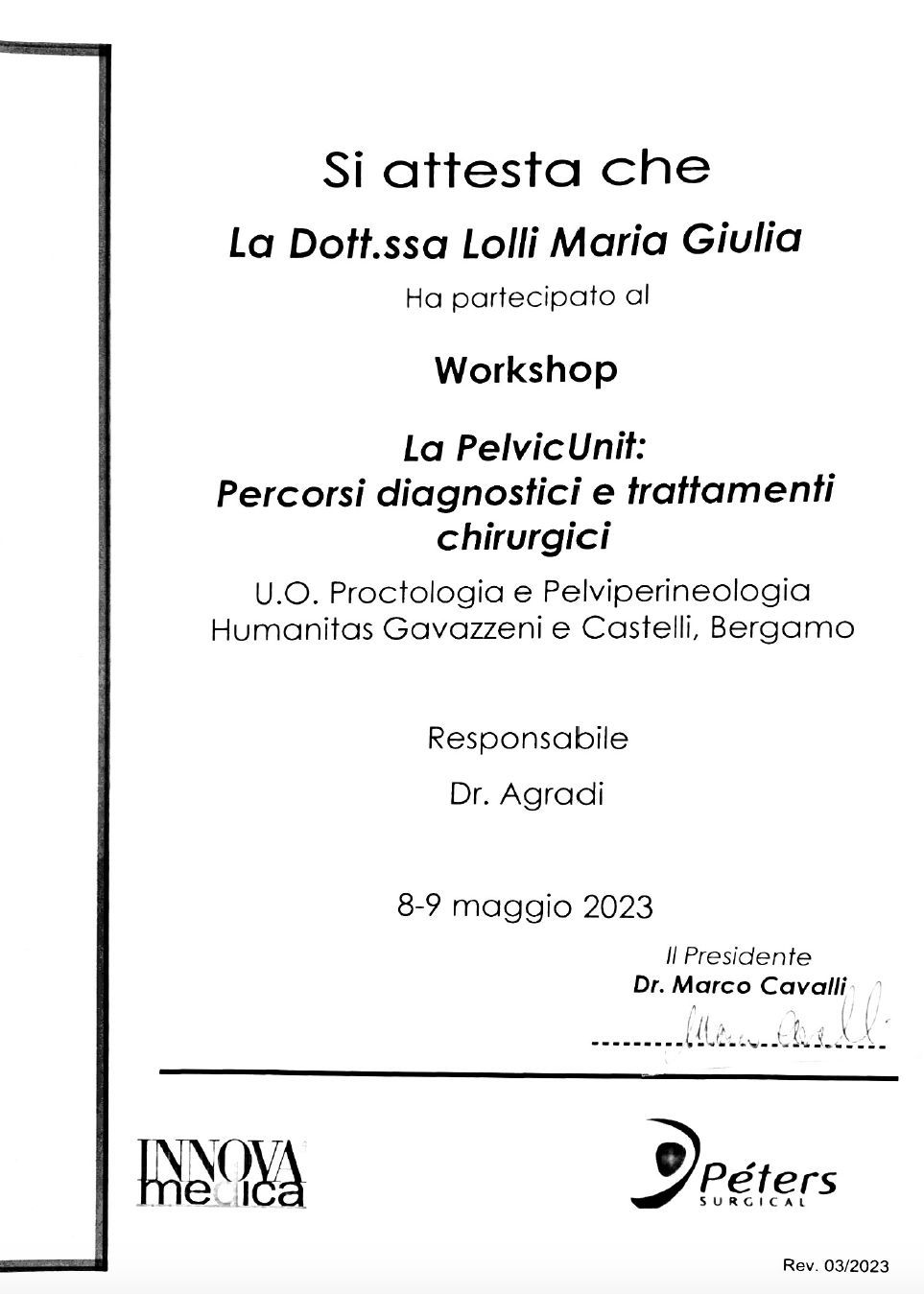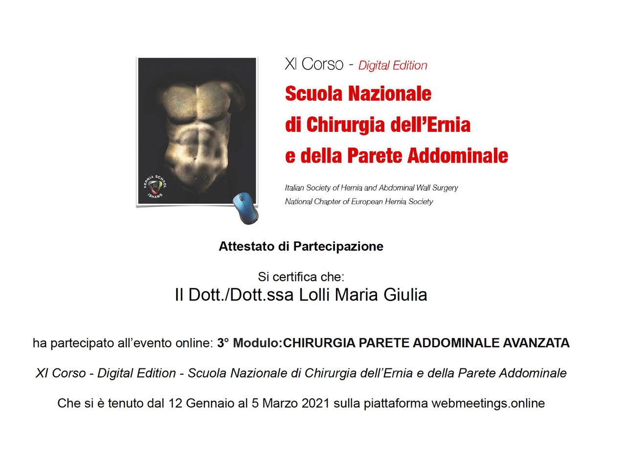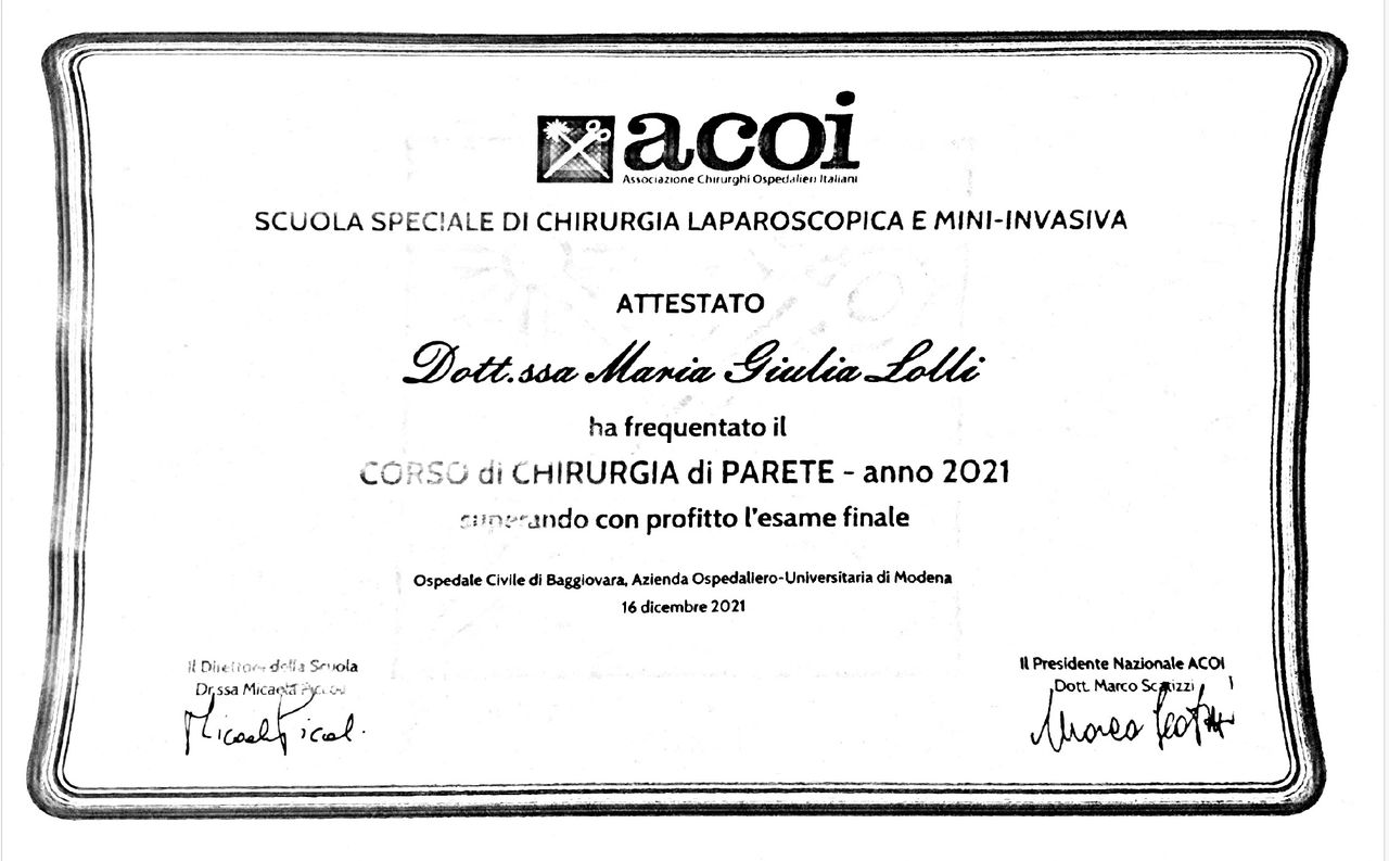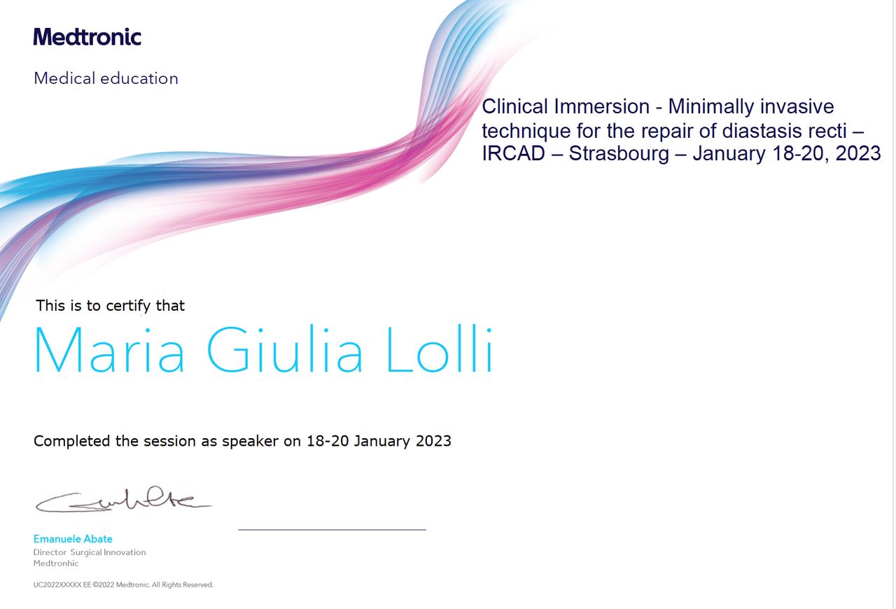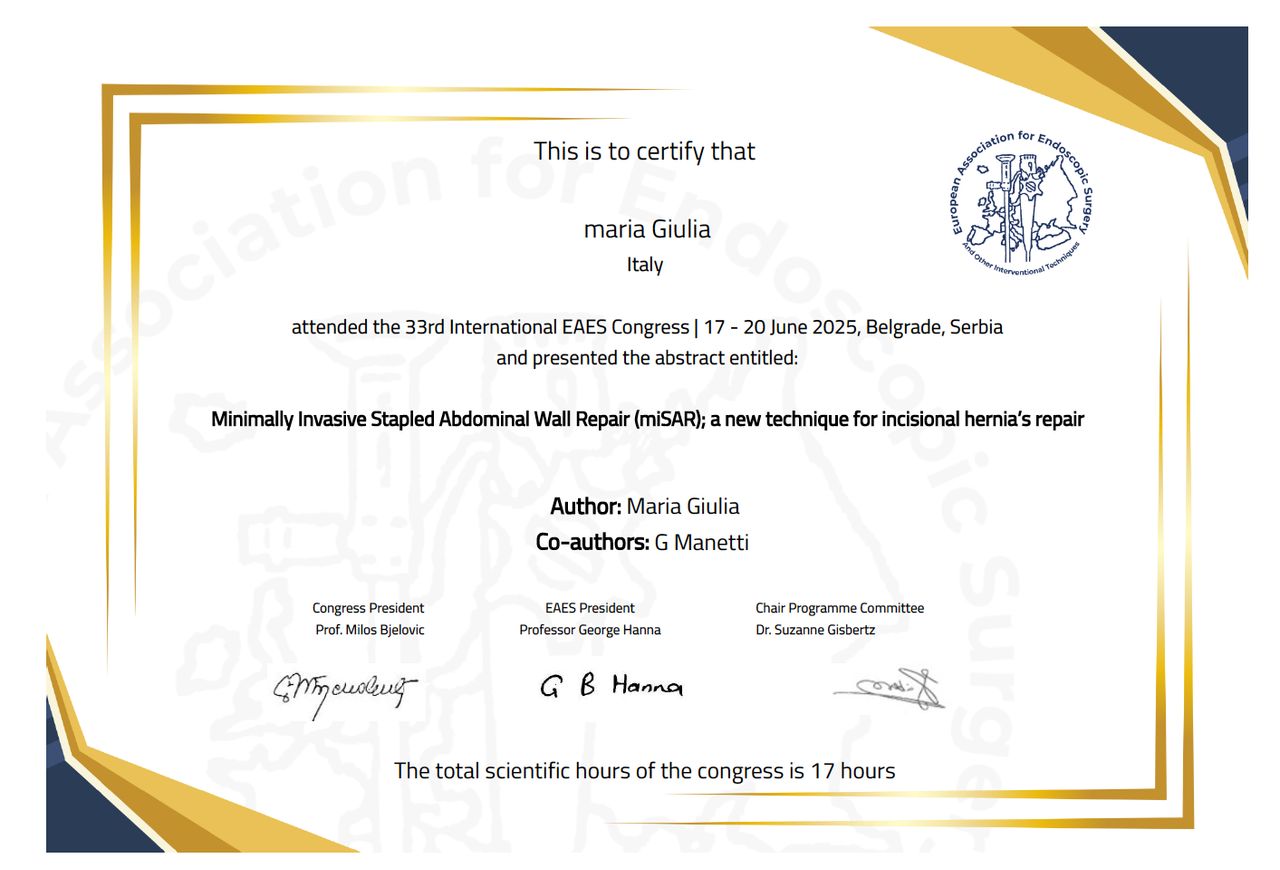 Credo fortemente in una chirurgia su misura: ogni paziente è unico e merita un percorso personalizzato. Per questo scelgo la tecnica più appropriata in base al tipo di patologia, alle caratteristiche anatomiche e alle esigenze individuali, integrando le competenze della chirurgia generale con un approccio specialistico alla parete e al pavimento pelvico.