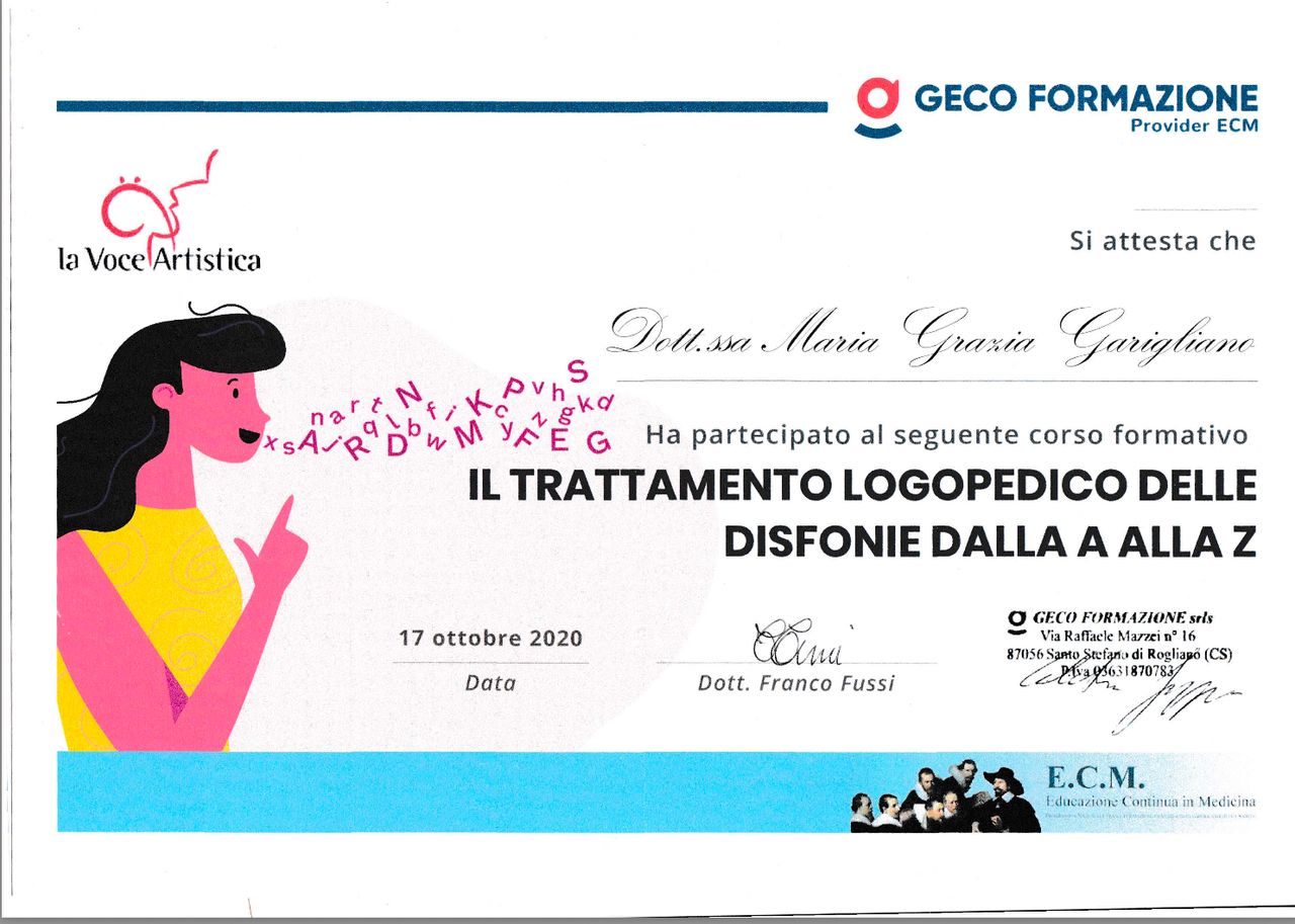 E una grande professionista fa il suo lavoro molto bene molto attenta e scrupolosa sono fiera di averlla incontrata mia figlia ora sa parlare molto bene grazie a lei