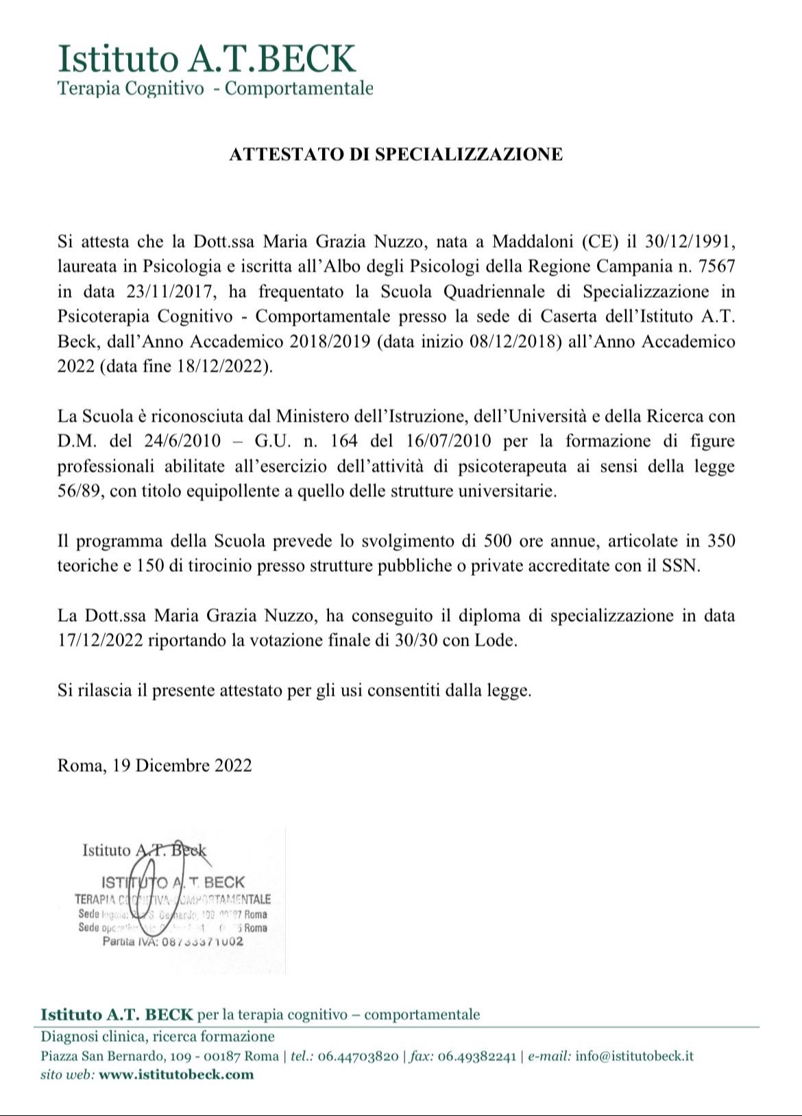 Hai avuto una visita con Dott.ssa Maria Grazia Nuzzo? Condividi quello che pensi. Grazie alla tua esperienza gli altri pazienti potranno scegliere il miglior dottore per loro.