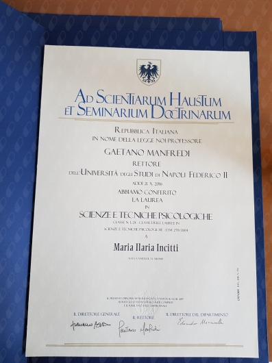 Nel 2020 ho quindi superato l'esame di abilitazione come Psicologa e mi sono iscritta all'albo dell'Ordine degli Psicologi della Regione Campania.