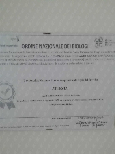 Grande professionalità unita a disponibilità e attenzione. La Dott.ssa La Malfa sa costruire percorsi personalizzati e motivanti che aiutano davvero a cambiare stile di vita