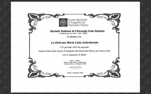 Nel 2011 ho conseguito il Master di II Livello in Chirurgia Miniinvasiva e Chirurgia Robotica Ginecologica presso l'Università di Pisa.