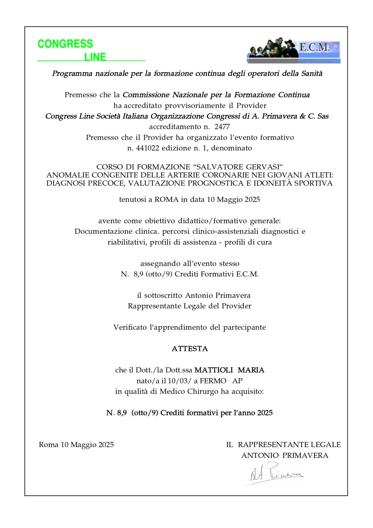 • Certificato per l’idoneità alla pratica ludico-motoria