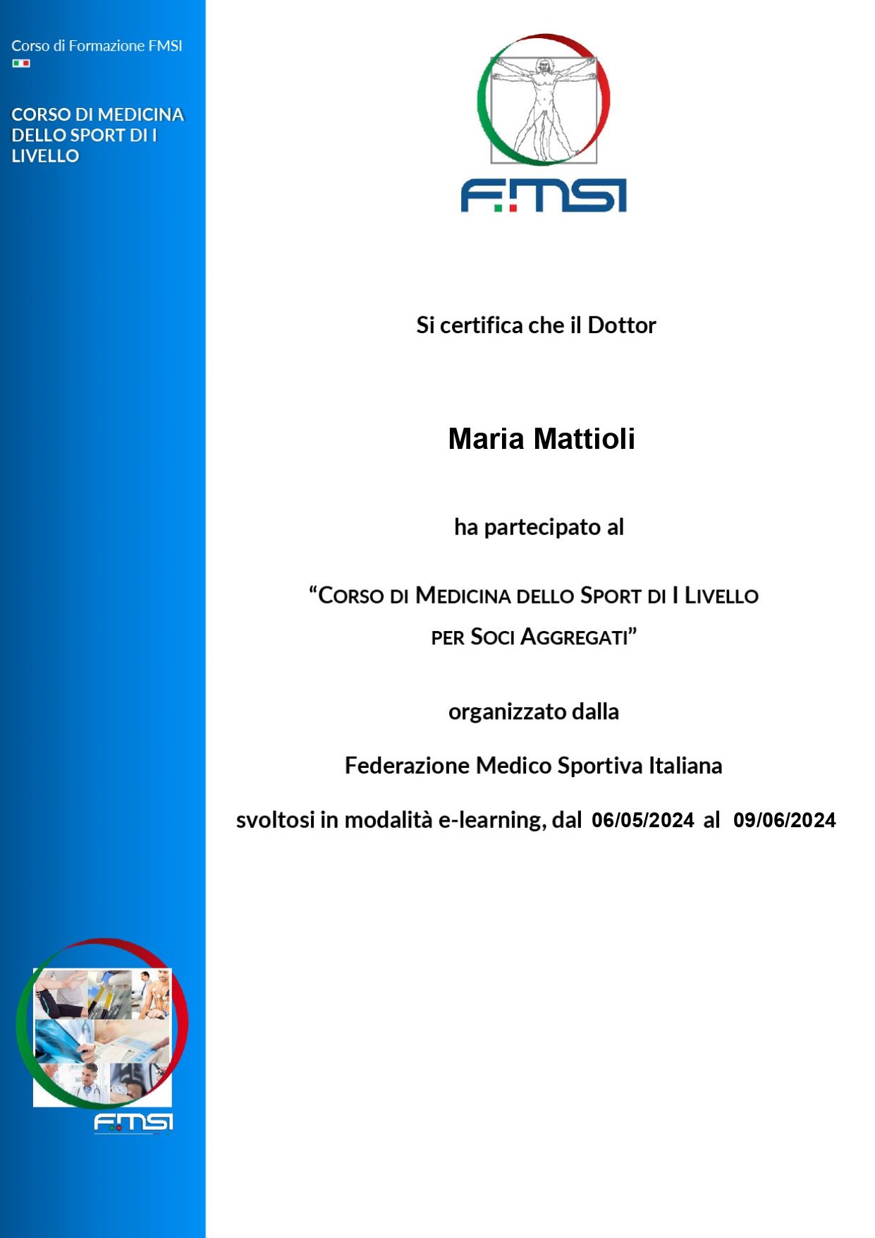 - I medici che hanno conseguito il titolo di Socio Aggregato della Federazione Medico Sportiva Italiana (FMSI) dopo aver frequentato il relativo corso di formazione organizzato dalla FMSI e aver superato il relativo esame