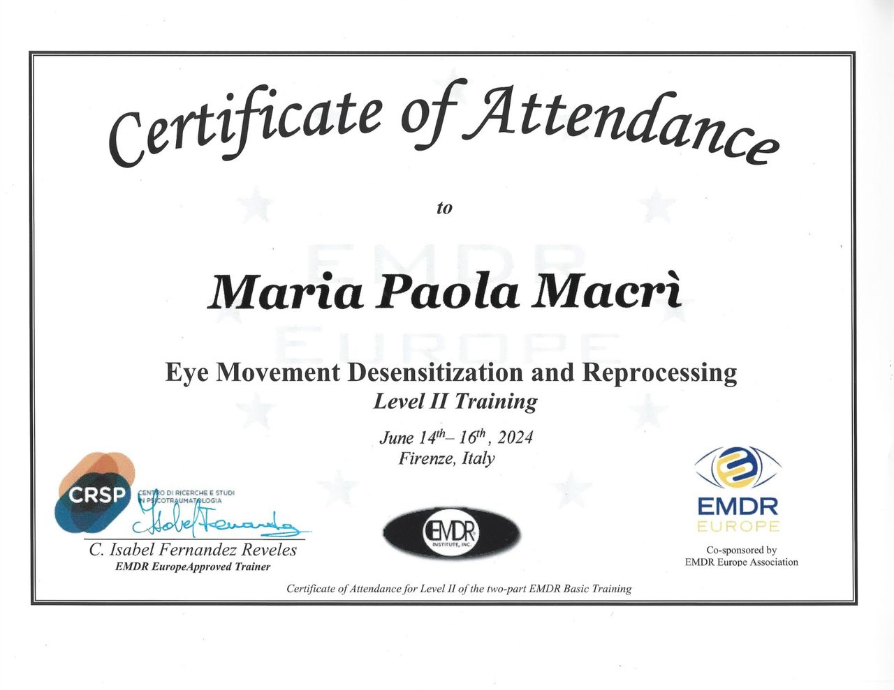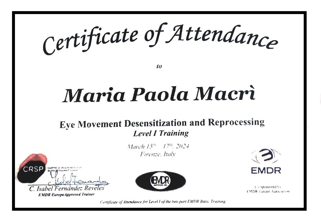 Sono terapeuta EMDR (Eye Movement Desensitization and Reprocessing) e utilizzo tale approccio per il trattamento di svariate patologie e problematiche legate a eventi traumatici o fortemente stressanti accaduti nel passato e che ancora condizionano il presente. Mi occupo di Autostima, Problematiche Relazionali e di Coppia, Relazioni Tossiche, Narcisismo, Disturbo Narcisistico e Borderline, Separazioni e Divorzi, Disturbi di Ansia, Ansia generalizzata, Attacchi di Panico, Disturbo Ossessivo Compulsivo, Evitamenti, Disturbi Dell'Umore e Depressione, Stress, Particolari Fasi della Vita (Gravidanza, Post Partum, Menopausa), Adolescenza. Dal 2006 periodicamente sono relatrice su argomenti quali Comunicazione, Autostima e Assertivitá, Disturbi d'Ansia, Narcisismo, Relazioni Sane e Tossiche, Coppia.