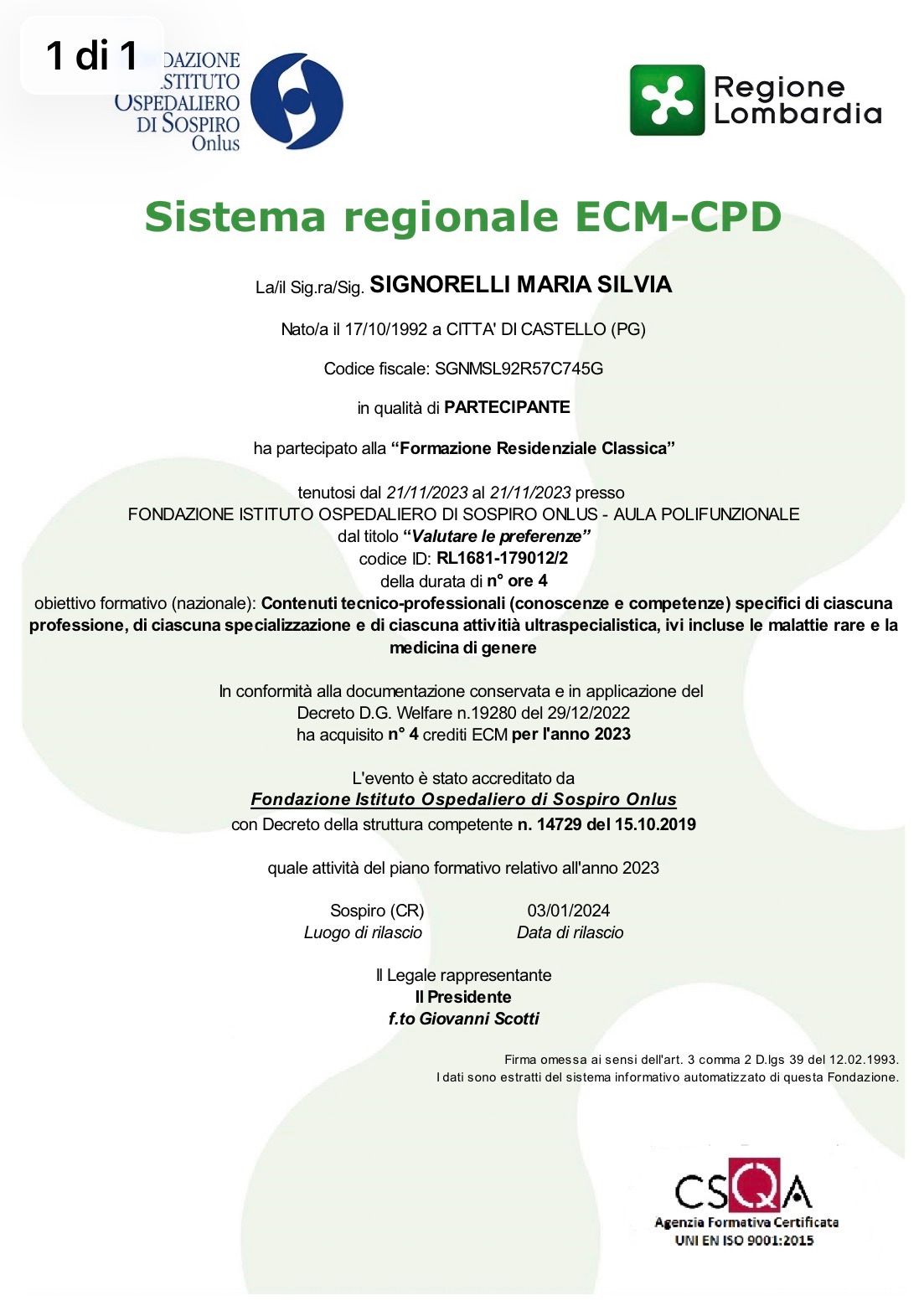 Hai avuto una visita con Dott.ssa Maria Silvia Signorelli? Condividi quello che pensi. Grazie alla tua esperienza gli altri pazienti potranno scegliere il miglior dottore per loro.