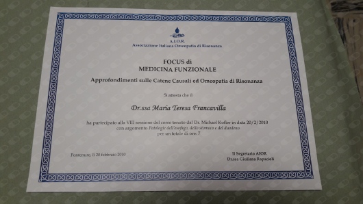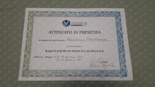 Ringrazio la dottoressa Francavilla per la sua preparazione e per la sua disponibilità all' ascolto.