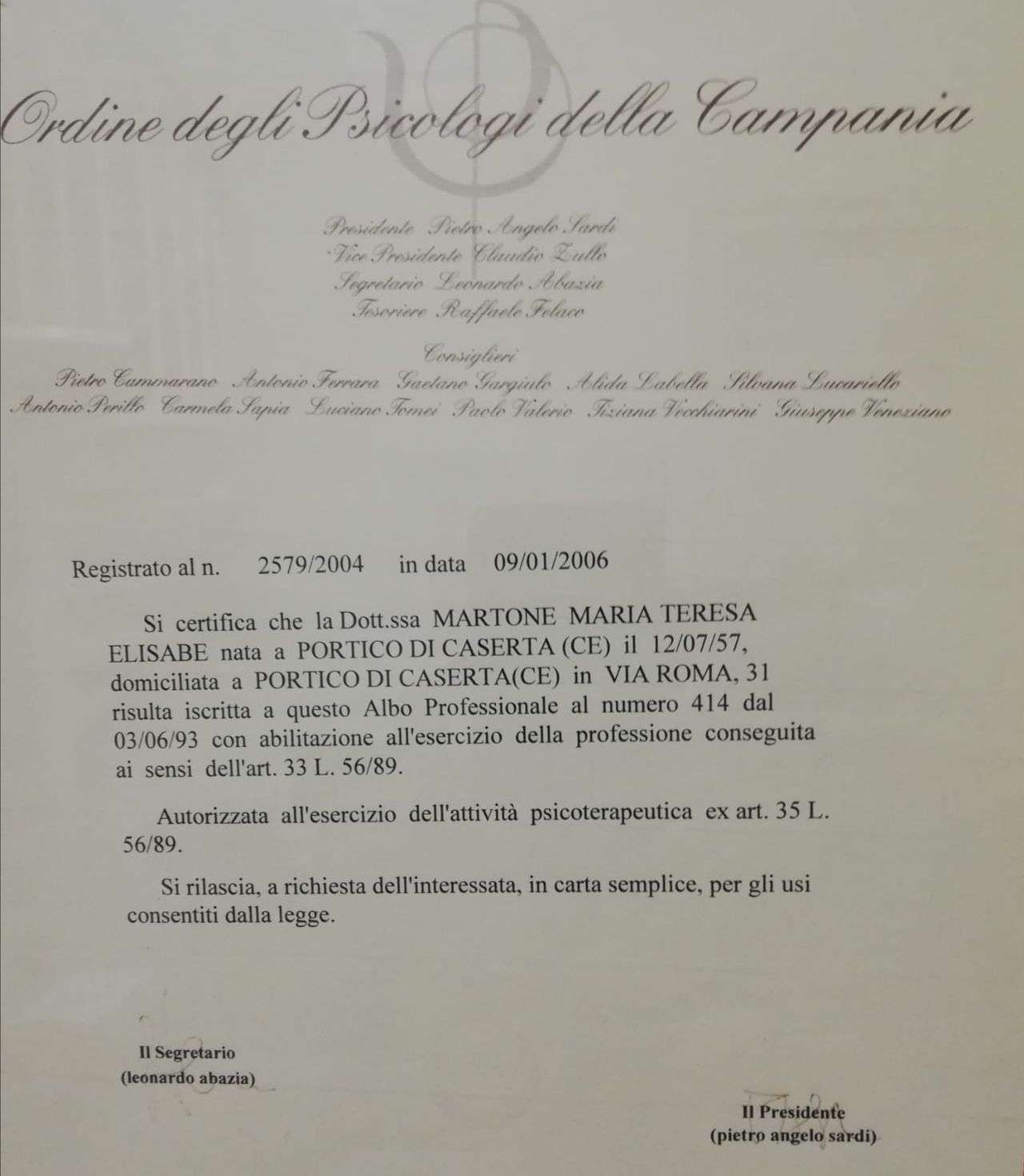 Ho lavorato all'Ospedale Militare di Caserta con incarico per la psicodiagnosi e psicoterapia e all'ASLnapoli2nord nell'ambito della riabilitazione e del consultorio familiare.
