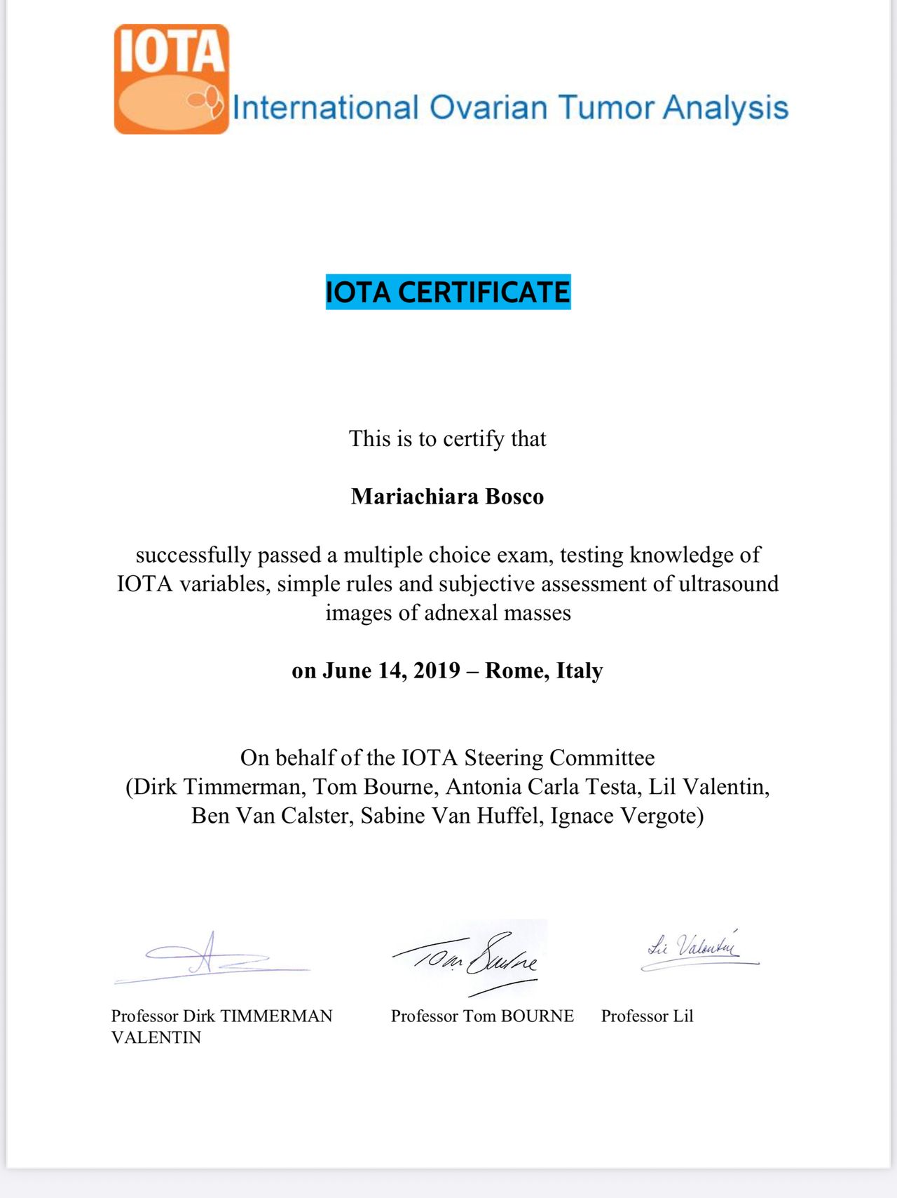 Ecografista certificato International Ovarian Tumor Analysis (IOTA).