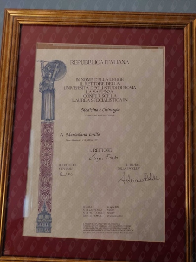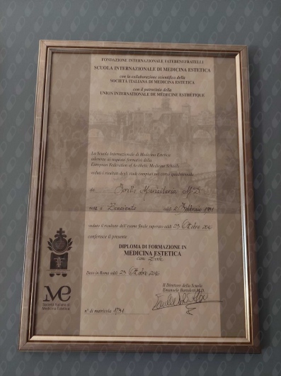 Ho conseguito il diploma quadriennale presso la Scuola Internazionale di Medicina Estetica "Fatebenefratelli" di Roma.