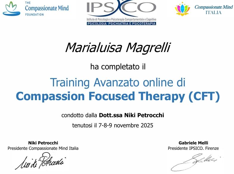 Con la dottoressa Magrelli sto affrontando un periodo difficile e ogni seduta mi aiuta a fare chiarezza e a ritrovare un po' di serenità. E' professionale, attenta e capace di utilizzare tecniche terapeutiche davvero efficaci. Mi sento sempre accolta e mai giudicata, e dalle sedute esco più leggera. La consiglio per la sua professionalità, concretezza e umanità.