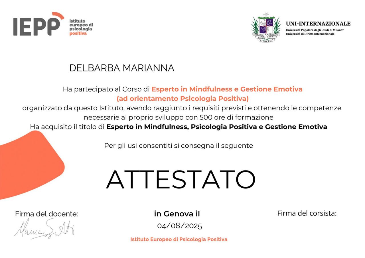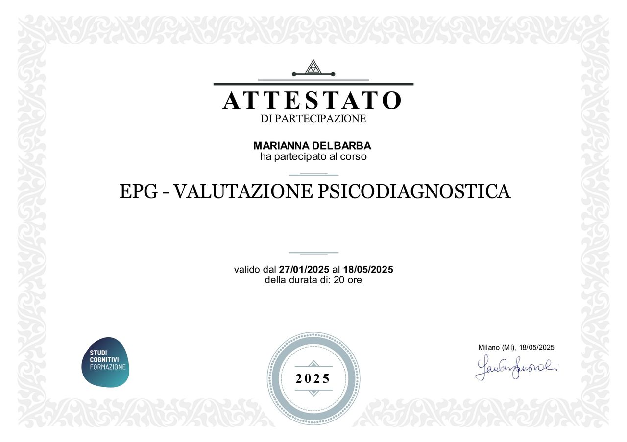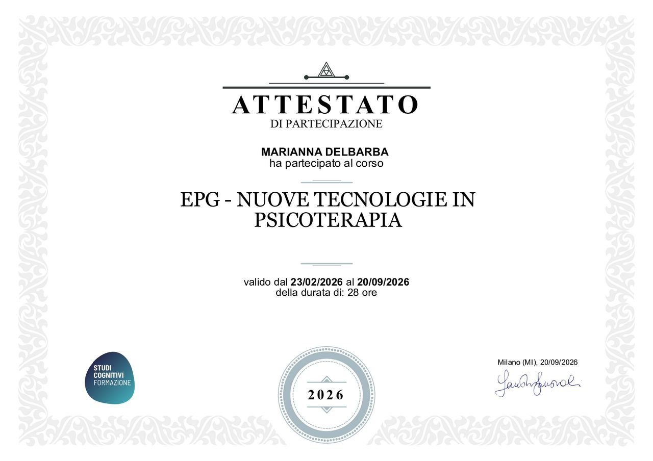 Buongiorno, mi chiamo Marianna e sono una psicologa clinica e psicoterapeuta cognitivo-comportamentale in formazione.