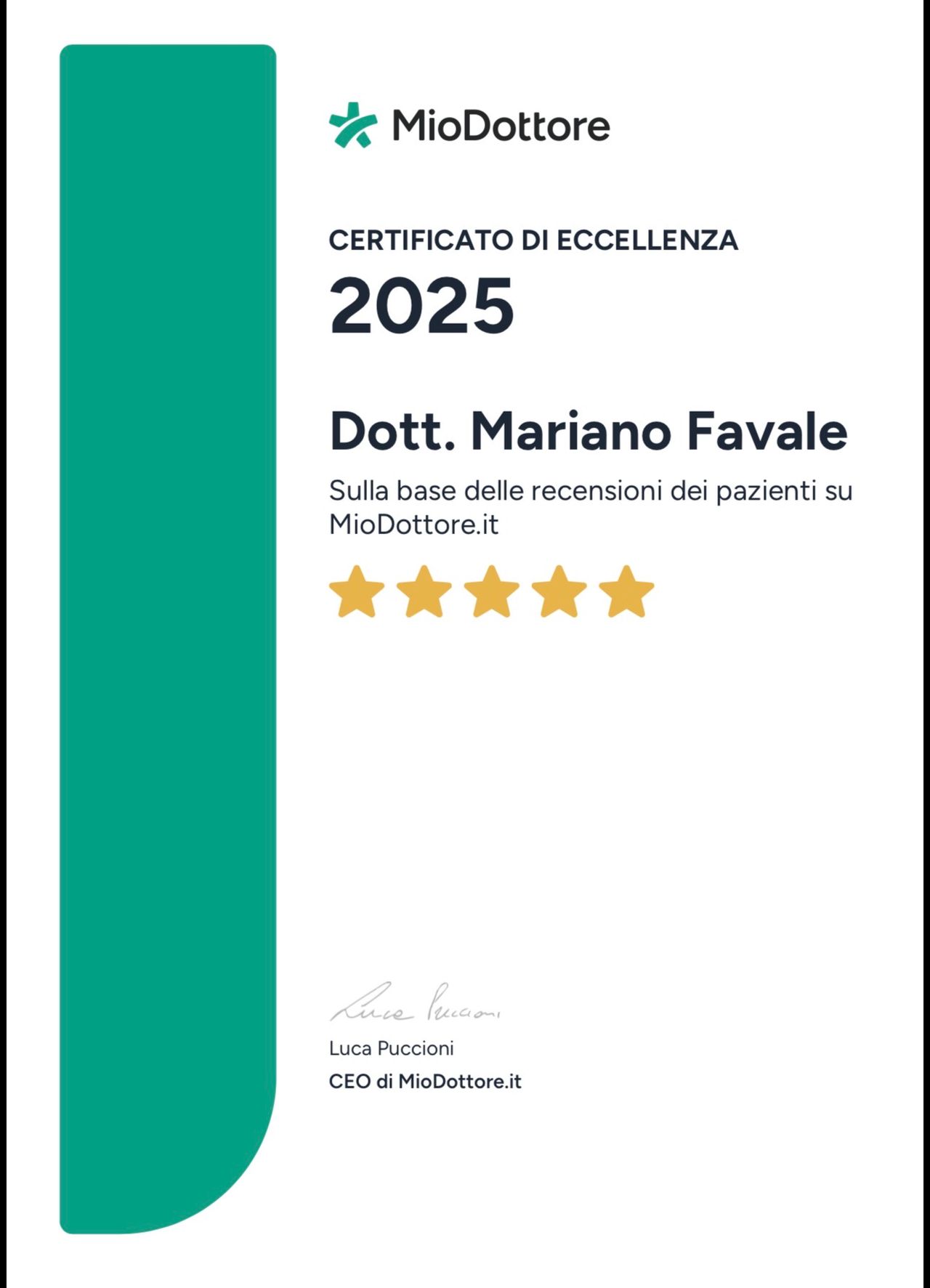 Il dottor Favale è sempre disponibile ed attento a dare tutte le spiegazioni . Lo consiglio vivamente