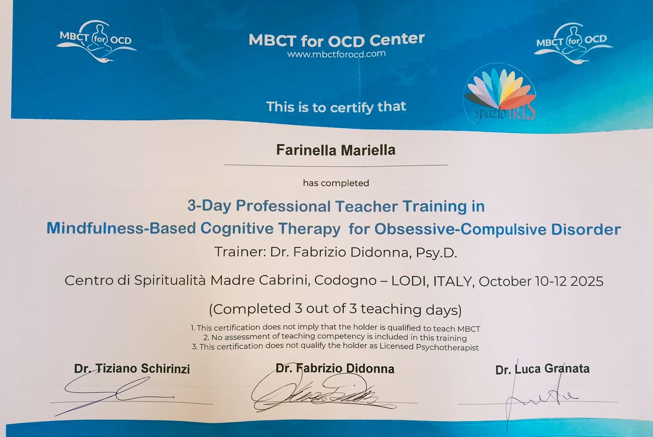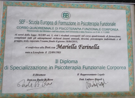 Sono Psicologa e Psicoterapeuta specializzata in Psicoterapia Funzionale corporea ed Istruttrice mindfullness per DOC.