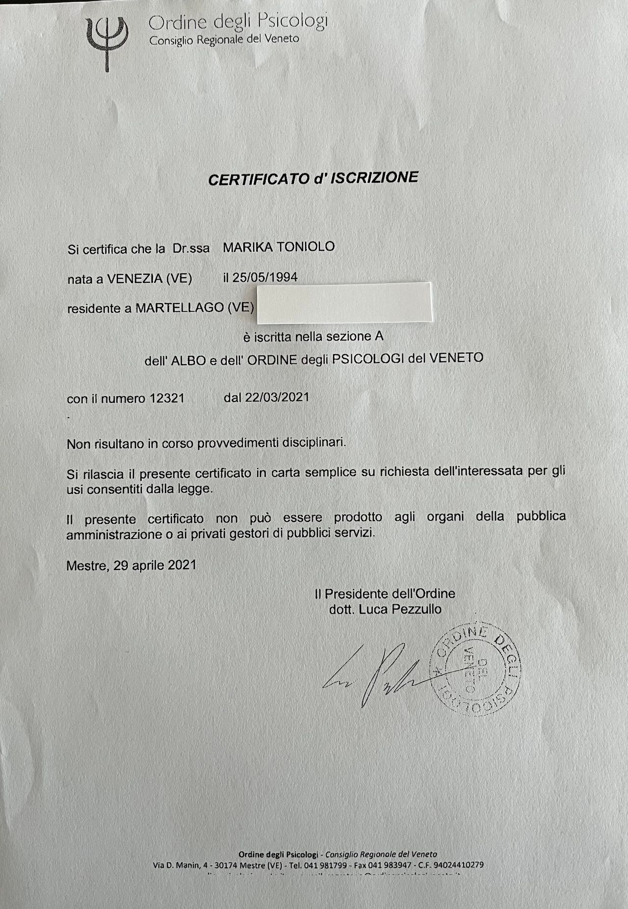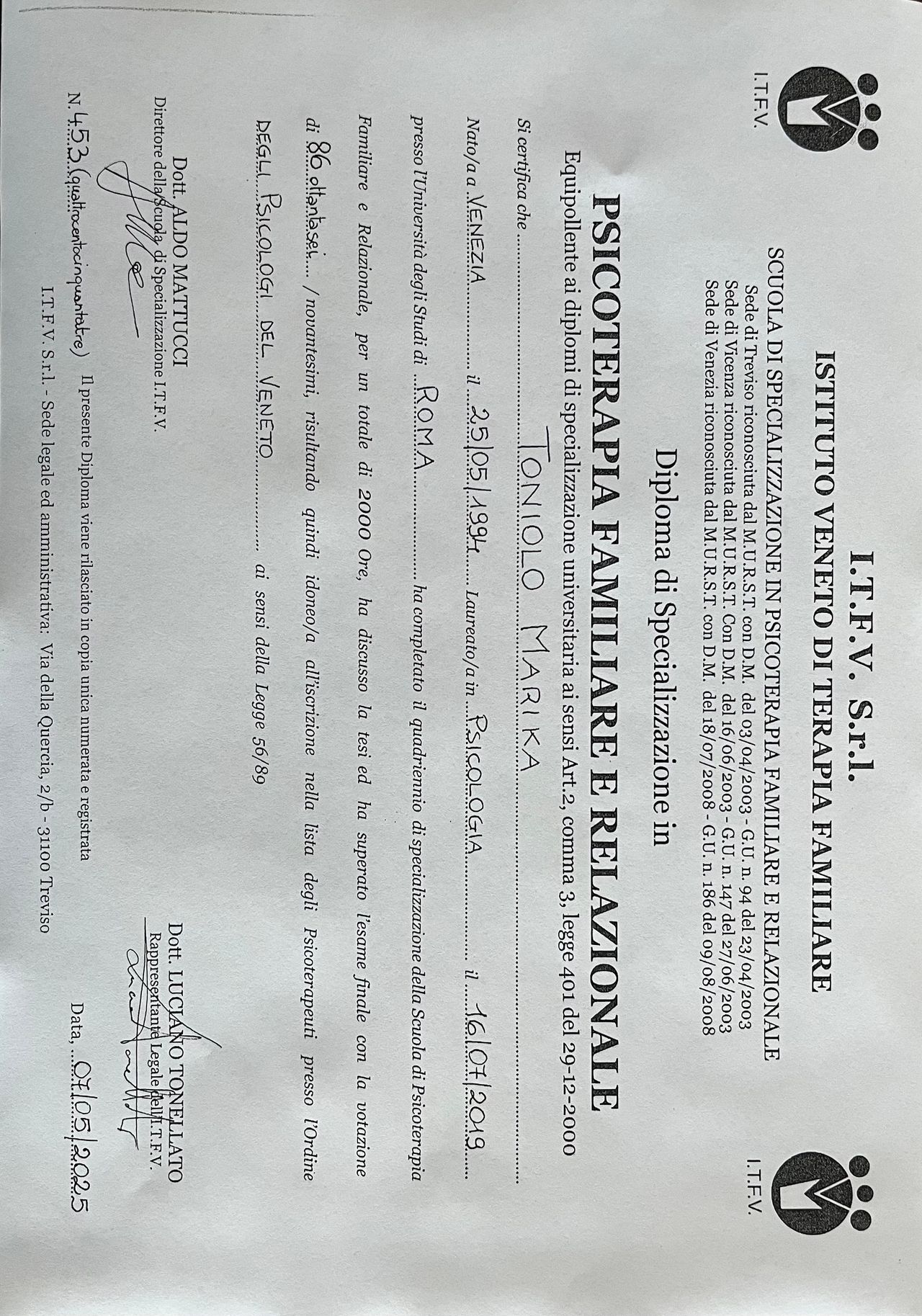• Dott.ssa Marika Toniolo • psicoterapia •