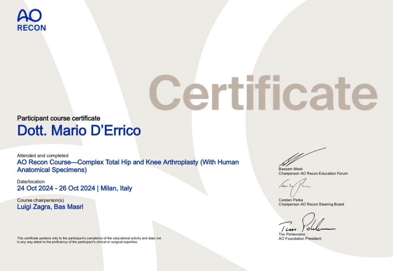 A causa di diagnosi di coxoartrosi congenita alle anche, mi sono sottoposto ad intervento di protesi d'anca totale SX nel 2023, e devo assolutamente ringraziare il dott. Mario, la sua equipe e la struttura clinica Zucchi di Monza perche mi hanno permesso di continuare la mia professione di istruttore sportivo. Gioco a tennis, padel regolarmente, vado in palestra e sono un istruttore di kitesurf. Nel 2026 mi sottoporro' al medesimo intervento per l'anca destra.
