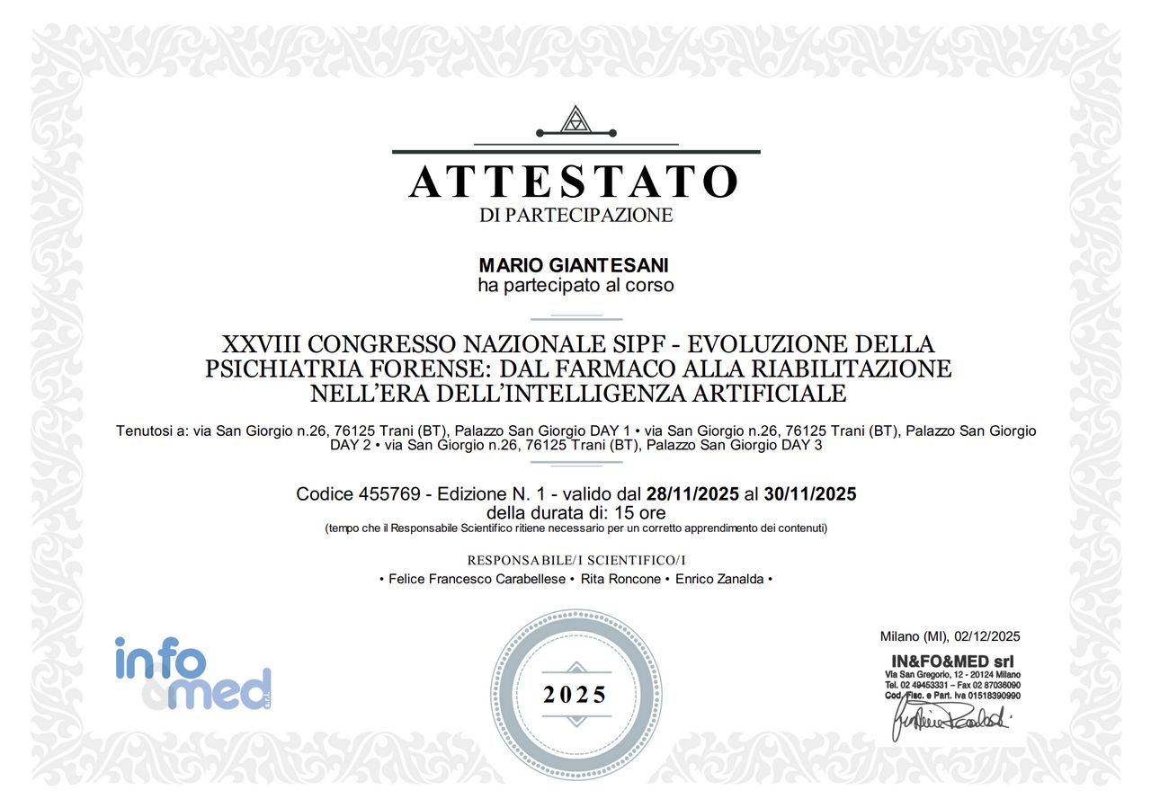Sono uno Psicologo con formazione specialistica in ambito clinico e forense, con un percorso accademico e professionale orientato alla valutazione psicologica ad alta complessità.