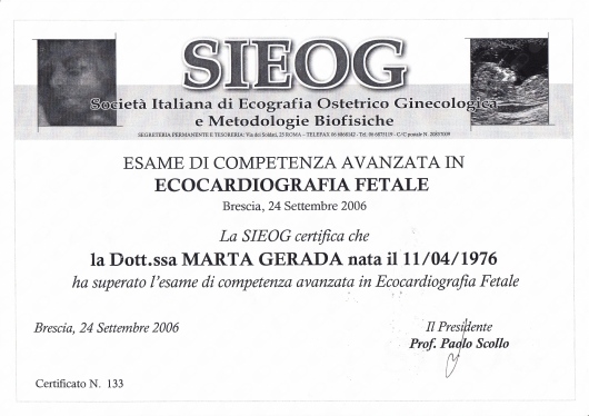 Il mio campo di maggiore esperienza è l'ecografia sia ginecologica che ostetrica. In particolare ho avuto modo di perfezionare la tecnica della Doppler Flussimetria fetale durante un anno di formazione presso l'Erasmus Medical Center, a Rotterdam, Olanda.