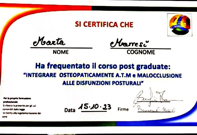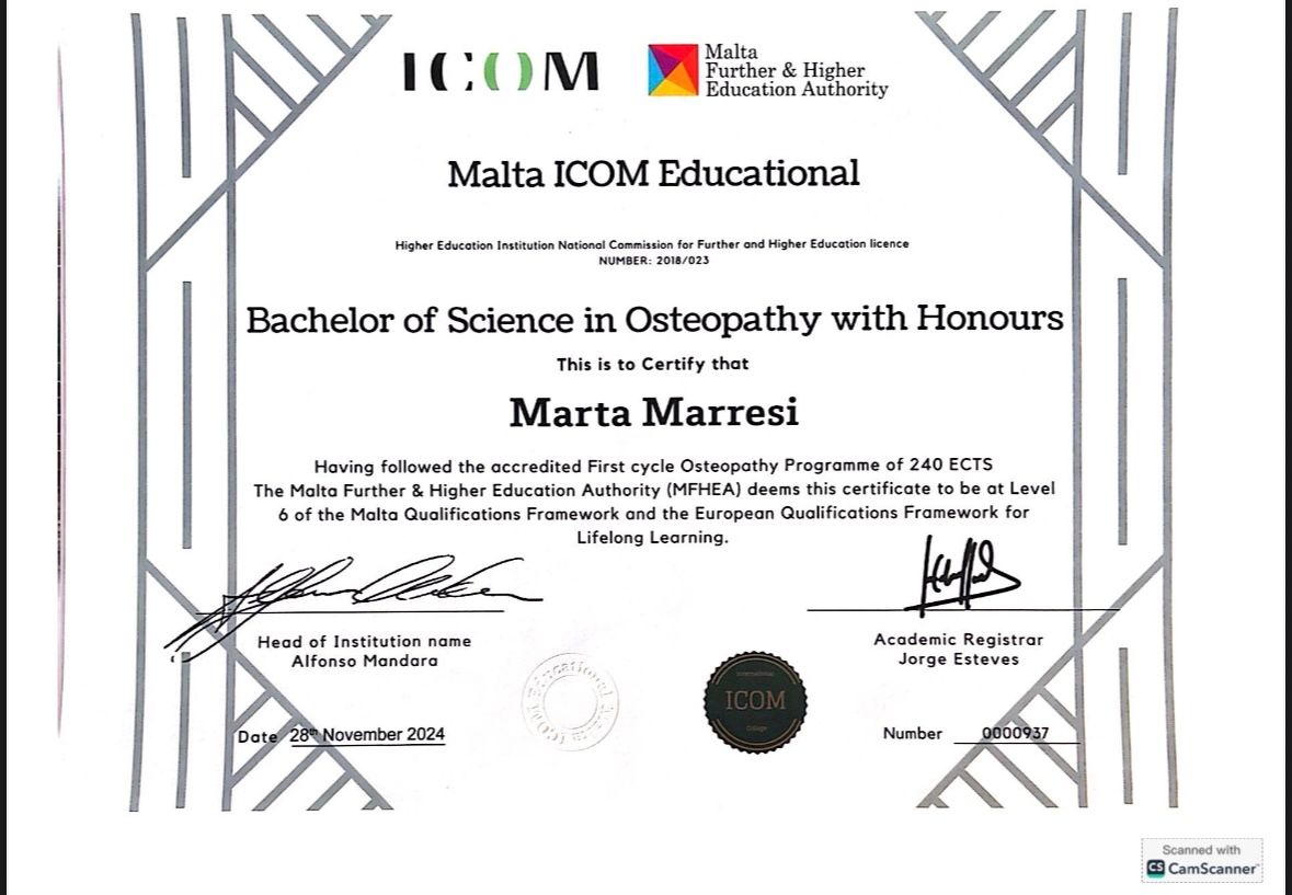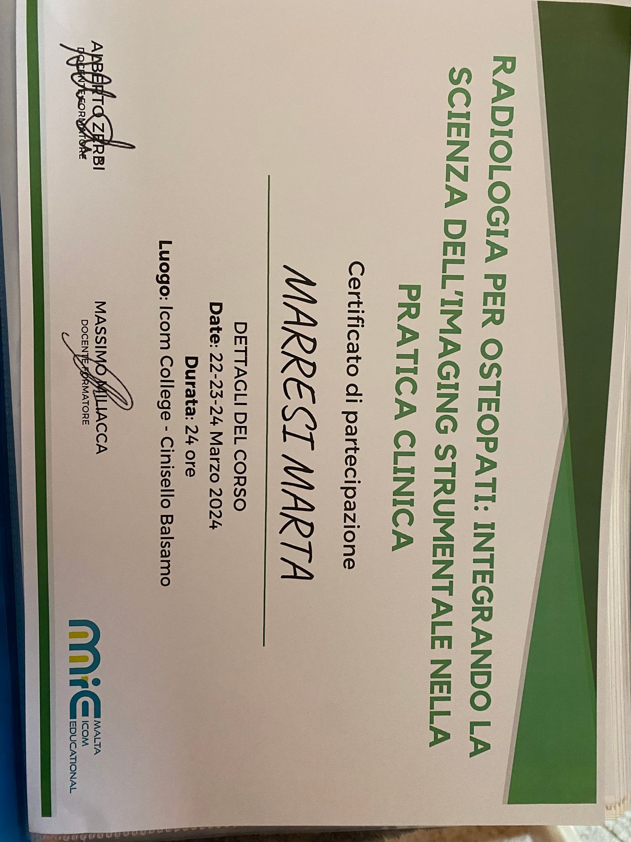 Mi sono rivolta alla dott.ssa Marresi per un trattamento osteopatico. Fin dal primo incontro si è dimostrata estremamente professionale, ha saputo ascoltare con grande disponibilità le mie esigenze, mettendomi subito a mio agio e creando un clima di fiducia. Il trattamento è stato efficace e condotto con grande competenza, ho percepito fin da subito benefici concreti.