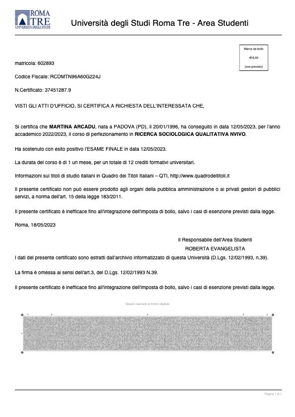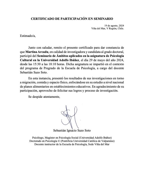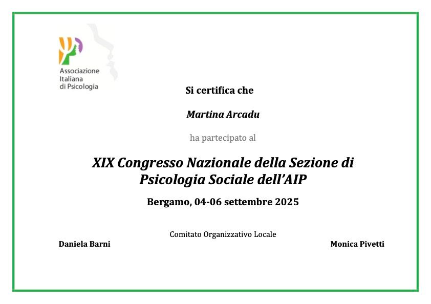 Il mio percorso di formazione e ricerca si è sviluppato tra contesti diversi, in Italia e all'estero. Mi sono formata presso la Scuola di Psicoterapia Interattivo-Cognitiva di Padova e sono PhDc in Scienze Sociali e Psicologia, con un dottorato svolto in co-tutela tra l'Università di Genova e la Pontificia Universidad Católica de Valparaíso (Cile).