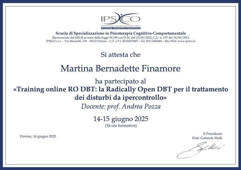 Martin mi ha fatto sentiee accolta, ascolta e compresa sin dalla prima seduta. Ho imparato tanto su di me, grazie al suo aiuto e alla sua guida