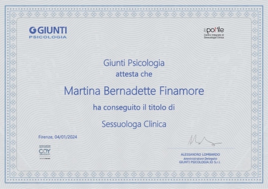 Mi sono rivolta circa un anno fa alla dott.ssa Finamore per alcuni problemi legati alla sfera relazionale. Ho trovato in lei una professionista con grandi capacità di ascolto ed empatia, gentile e disponibile. Il mio percorso con lei continua e mi ritengo molto soddisfatta