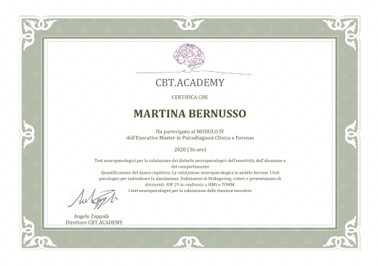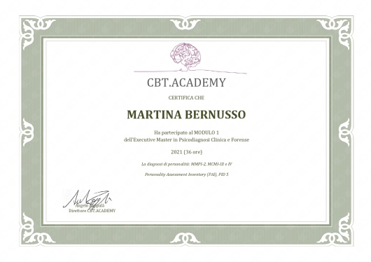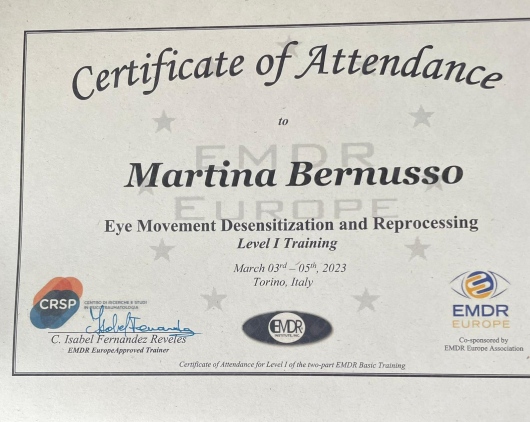 Mi sono laureata in Psicologia Criminologica e Forense presso l'Università di Torino e specializzata in psicoterapia cognitiva-comportamentale presso la CBT Academy di Torino.
