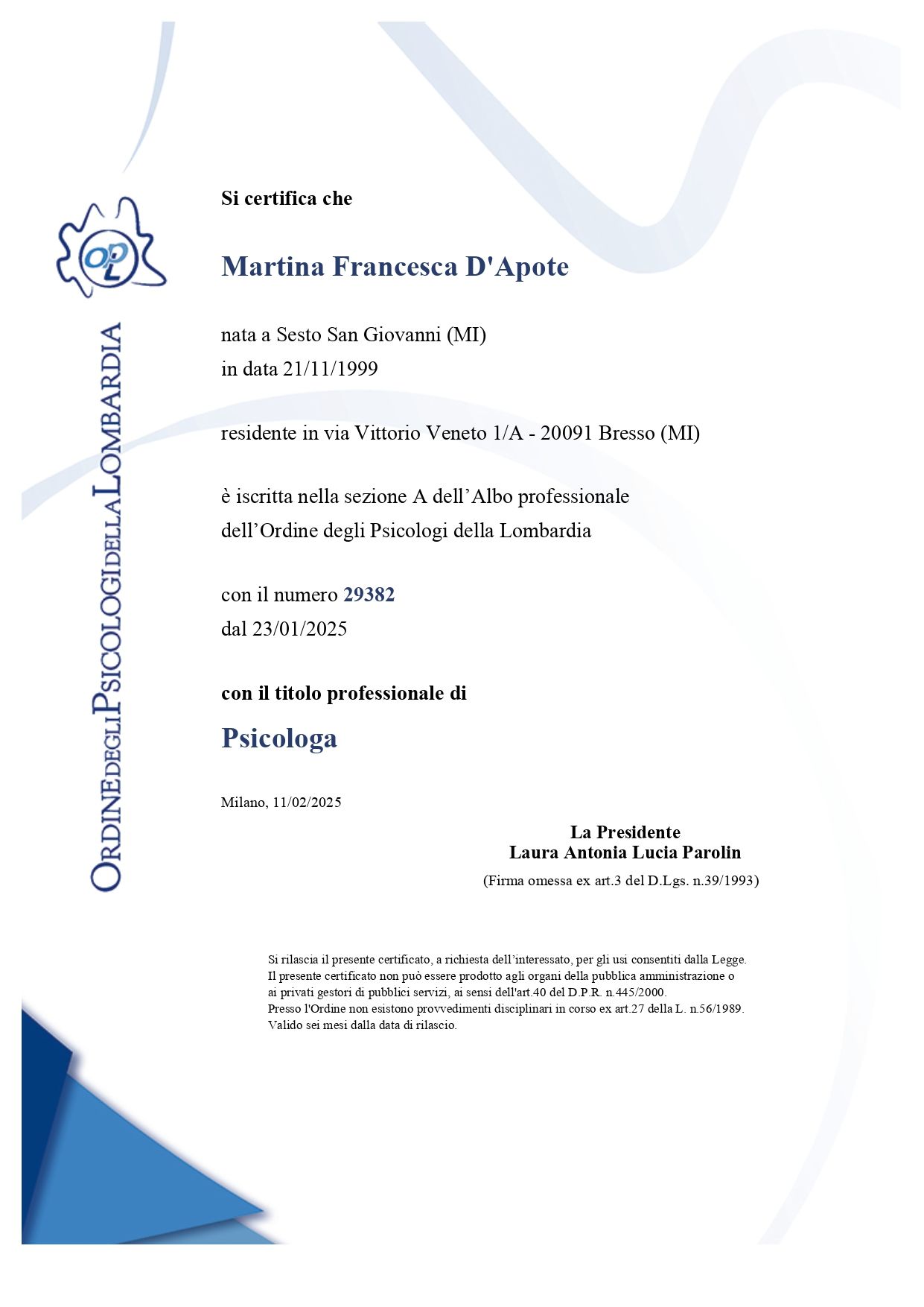 Dott.ssa Martina Francesca D'Apote