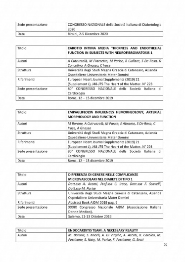 Nel corso della sua carriera, la Dott.ssa Parise ha approfondito le seguenti aree: