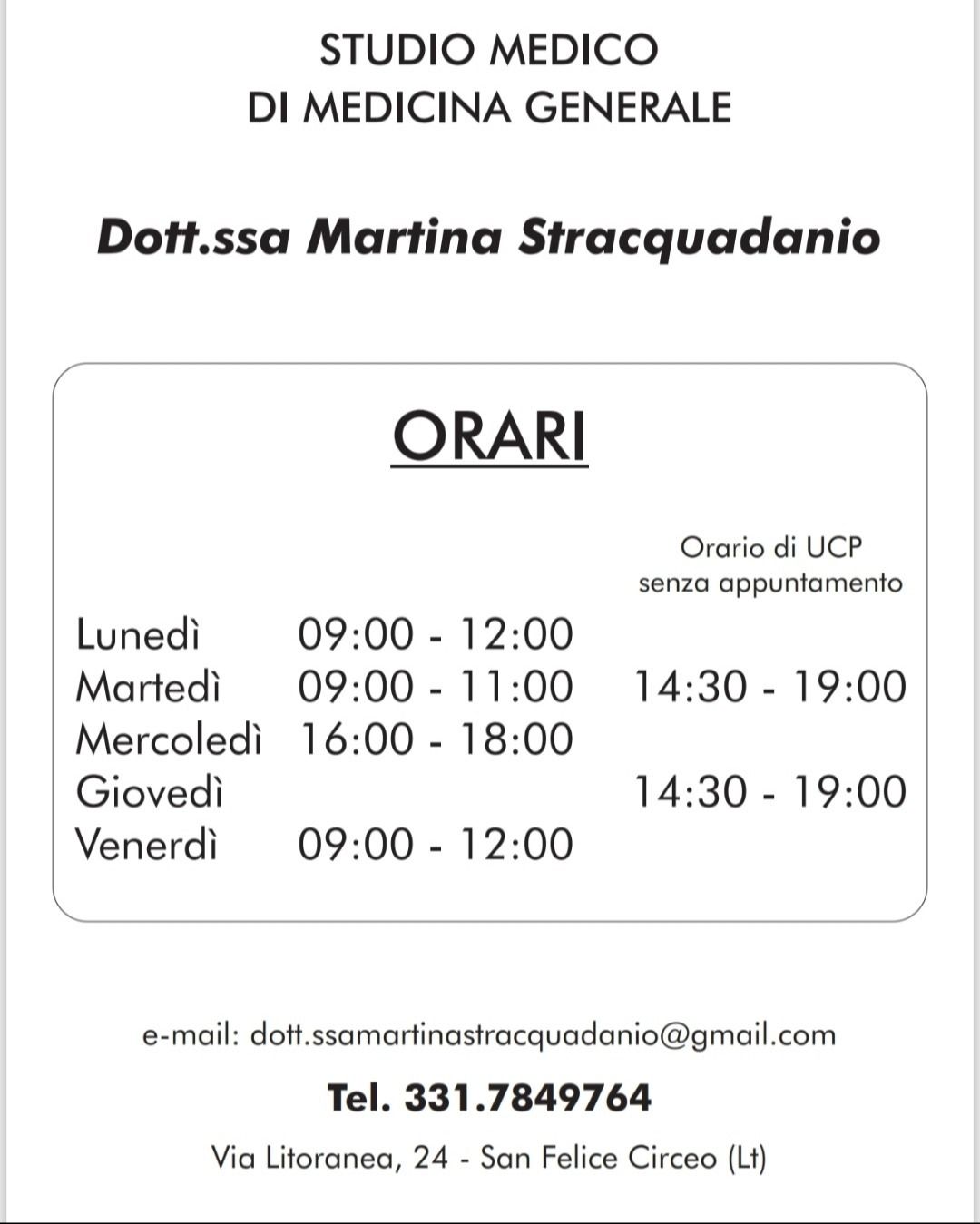 Studio medico Dott.ssa Martina Stracquadanio • Visita medica generica in CONVENZIONE