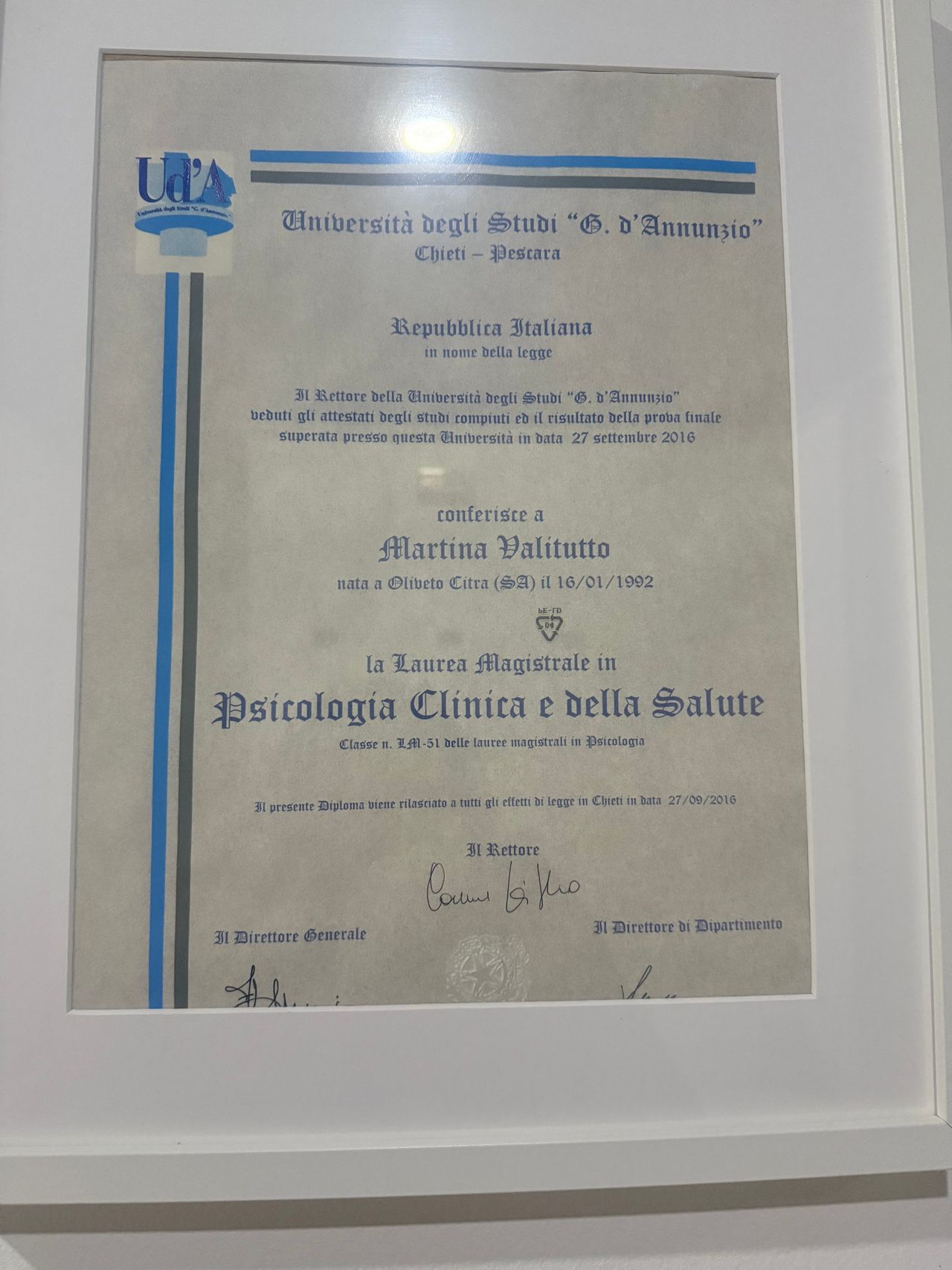 Mi presento sono Martina Valitutto, psicologa clinica e della salute dal 2018.