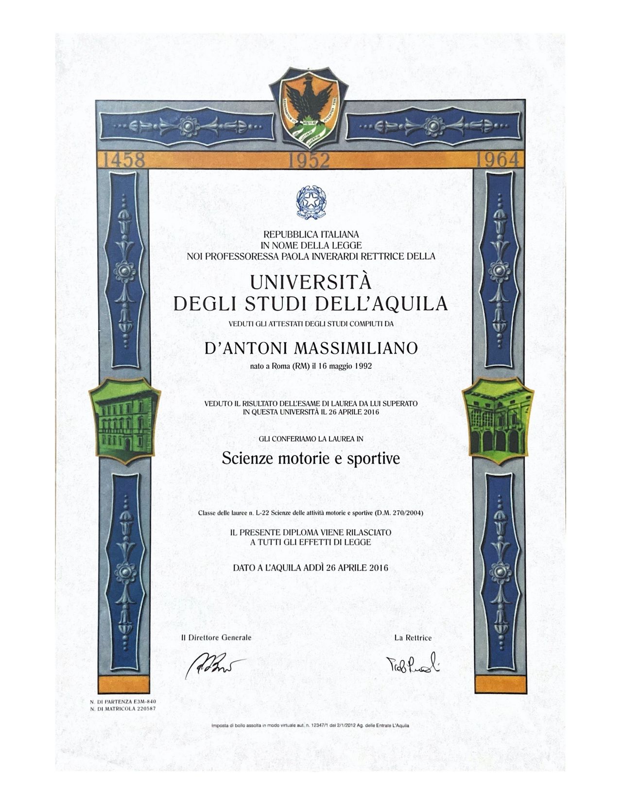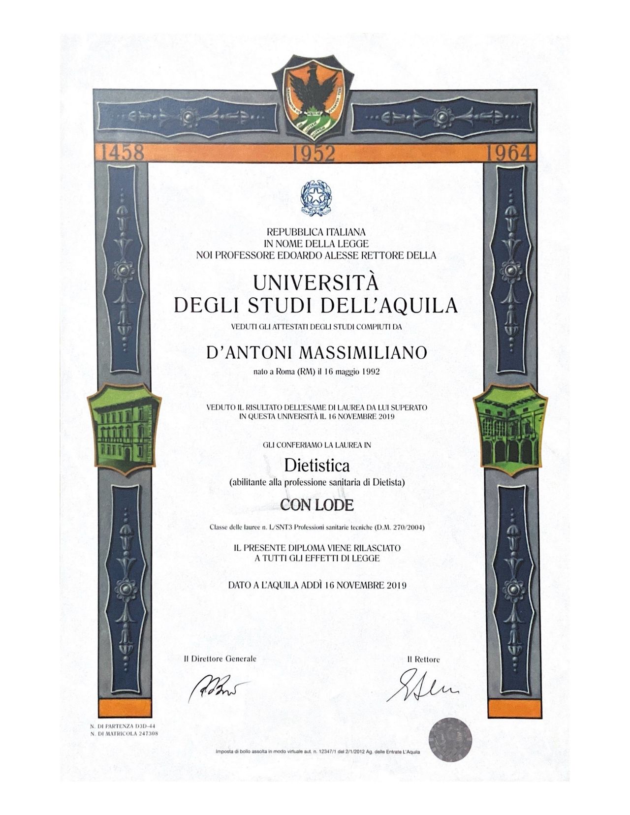 Sono il Dott. D'Antoni Massimiliano, laureato in "Dietistica" e "Scienze Motorie e Sportive".