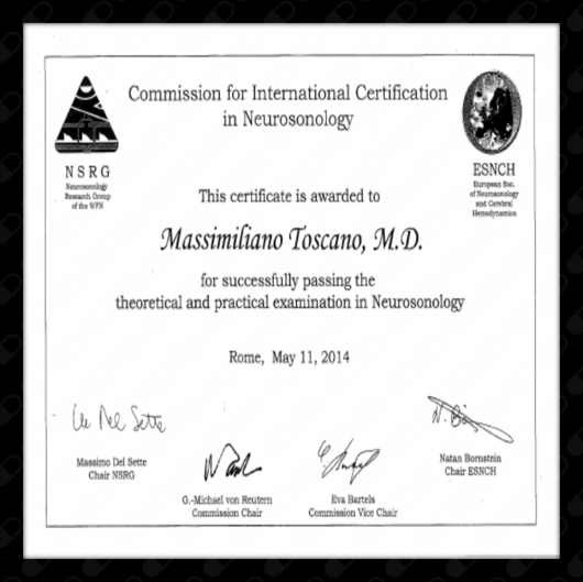 Dal 2017 ad oggi lavoro come Neurologo e Neurosonologo (Doppler Vasi Epiaortici e Doppler Transcranico) presso l’Ospedale Fatebenefratelli – Isola Tiberina di Roma