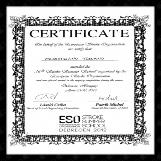 Sono inoltre membro del consiglio Direttivo e Coordinatore Regionale della Società Italiana Studio dello Stroke (SISS), e membro del comitato tecnico-scientifico dell’Istituto di Ricerca I.R.S.E.F. Lazio.