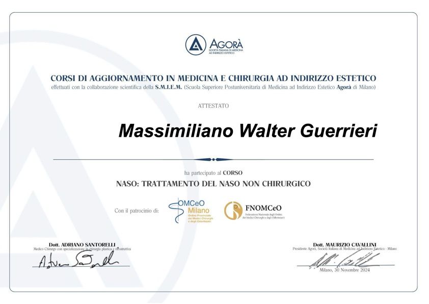 Sono il dottor Massimiliano Walter Guerrieri, chirurgo vascolare specializzato in cardiochirurgia e chirurgia vascolare, con un Master di II livello in Medicina Estetica. Attualmente ricopro il ruolo di dirigente medico presso il reparto di Chirurgia Vascolare della USL Sud Est ad Arezzo. In passato, ho lavorato come dirigente medico presso l’Unità Operativa Complessa di Chirurgia Vascolare del Policlinico Santa Maria alle Scotte di Siena, parte dell’Azienda Ospedaliero-Universitaria Senese.
