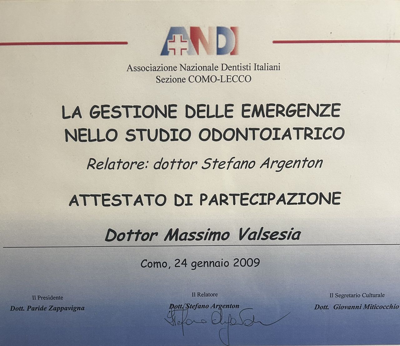 Io, con la mia famiglia e quella delle mie figlie frequentiamo lo studio Valsesia dal 1975, da quando ci siamo trasferiti a Como. Inizialmente il dentista era il padre del dott. Massimo. Bravissimo anche lui. Anche il figlio Massimo è un ottimo medico da ogni punto di vista. Competente e capace di trasmettere fiducia e sicurezza. Ho consigliato questo dentista anche ad amici che tuttora si rivolgono a lui. Lo studio è ben tenuto e anche il personale molto gentile e preparato. Non lo cambierei con nessun altro dentista. Durante la visita ti trasmette serenità e percepisci la sua professionalità.