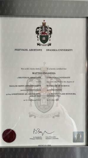 Ho conseguito il diploma come Osteopata D.O. a Roma presso Educam e la laurea in Osteopatia presso la Swansea University (UK).