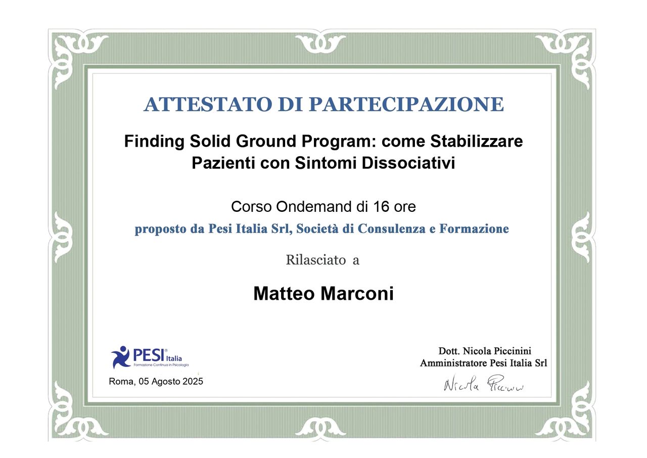 buon pomeriggio, sono una ragazza di 18 anni, che soffre da settembre 2024 di un forte stato dissociativo e depersonalizzazione/derealizzazione acuta con picchi di attacchi di panico intensi frequenti, tutto succedette da una situazione in famiglia che a settembre dell'anno scorso mi creò tanto dispiacere e paura e il giorno dopo mi risvegliai con un senso di irrealtà, sentendomi in un sogno, chiedevo alla mia famiglia di darmi un pizzicotto, inizialmente fu bruttissimo, non riuscivo a mangiare, tremavo e stavo male, dopodiché mi rassegnai e imparai ad accettare il sintomo non ignorandolo, vivendo costantemente con questo senso di irrealtà..molto frequentemente mi vengono crisi dissociative dove non capisco più chi sono, dove sono, che ci faccio qui e mi sembra di diventare pazza..