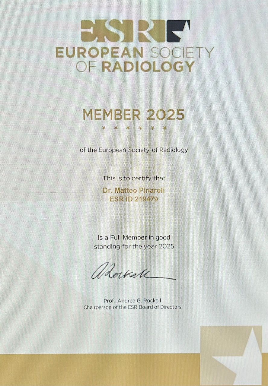 Sono socio della ESR European Society of Radiology e della ESCR European Society Cardiovascular Radiology.