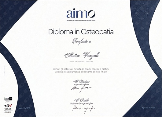 Nel 2019, dopo un percorso biennale presso la Synapsy di Busto Arsizio, ho conseguito il titolo di massoterapista, prima di intraprendere gli studi in osteopatia.