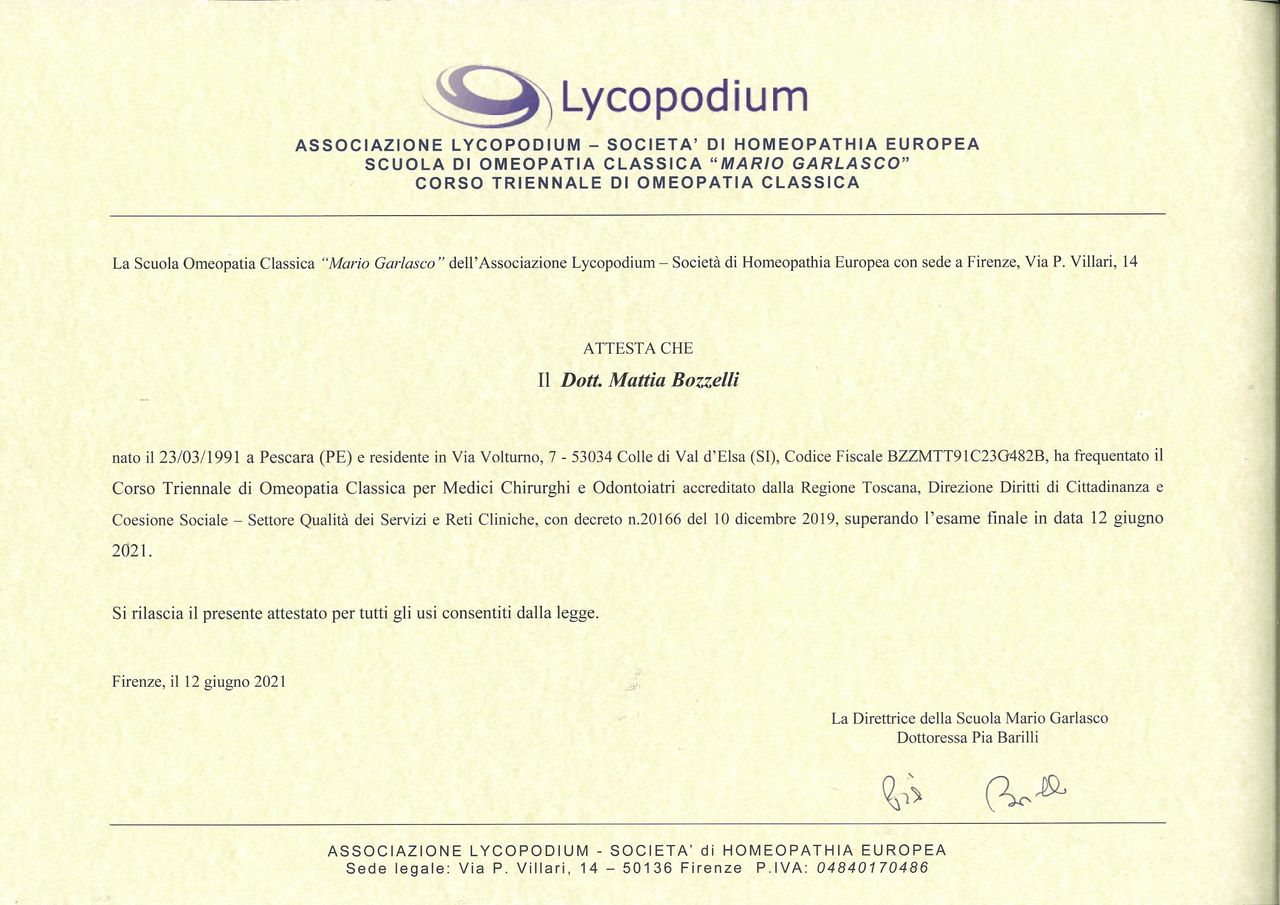Per queste ragioni, dopo essermi laureato con lode in Medicina e Chirurgia, non essendo completamente soddisfatto degli strumenti acquisiti, mi sono subito dedicato allo studio e alla pratica delle così dette medicine “alternative” –in particolare l’omeopatia e l’agopuntura- ed ho trovato quello che cercavo: la centralità del paziente e dell’esperienza che egli fa della propria condizione di malato.