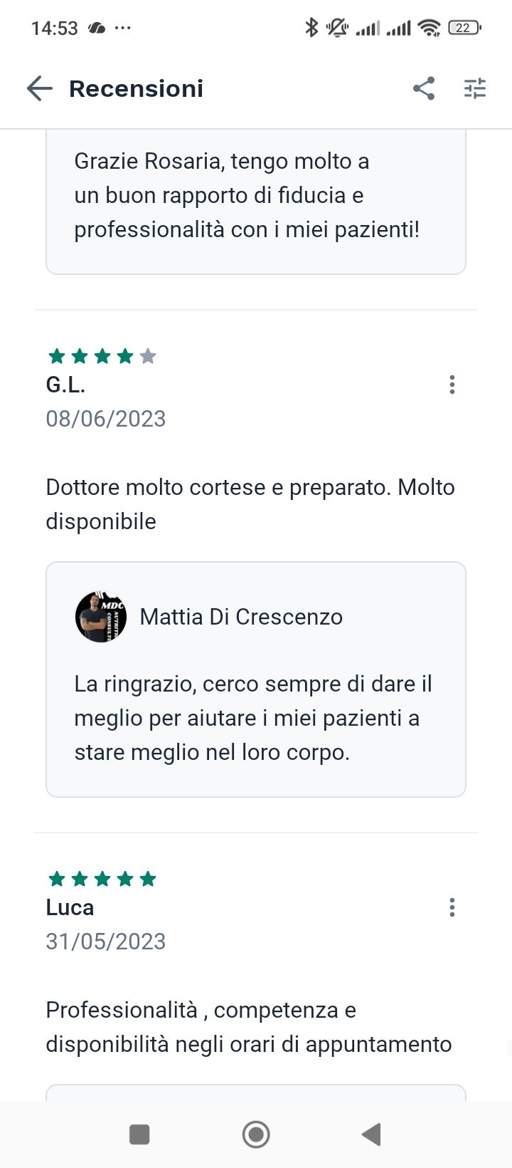 Mattia è un Professionista con la P maiuscola. Competente, preparato e sempre aggiornato, ma soprattutto capace di ascoltare: una qualità che pochi possiedono davvero. Dal primo incontro mi sono sentita compresa, e il piano alimentare che ha elaborato per me è sostenibile e non mi pesa. I risultati sono arrivati e ne sono molto soddisfatta. Oltre alla sua professionalità, colpisce la sua umanità e la vicinanza alla persona. Assolutamente consigliato.