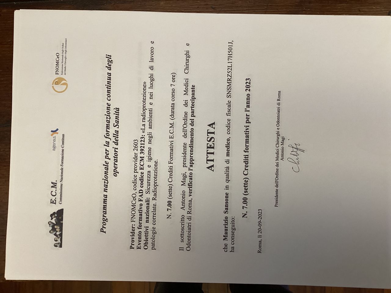 Ho partecipato ad oltre 200 corsi di aggiornamento dall'inizio degli anni 2000 ( tutti registrati sul sito ministeriale "Agenas"), nel 2016 ho creato un blog dove rispondo alle domande di moltissimi pazienti.