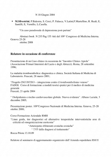 Dal maggio 2000 é stato Responsabile dell'ambulatorio di angiologia e diagnostica vascolare dell'Ospedale San Sebastiano Martire di Frascati.