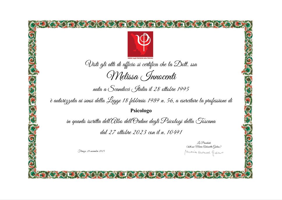 Sono una psicologa clinica e specializzanda in psicoterapia presso la Scuola di Psicoterapia Comparata di Firenze.