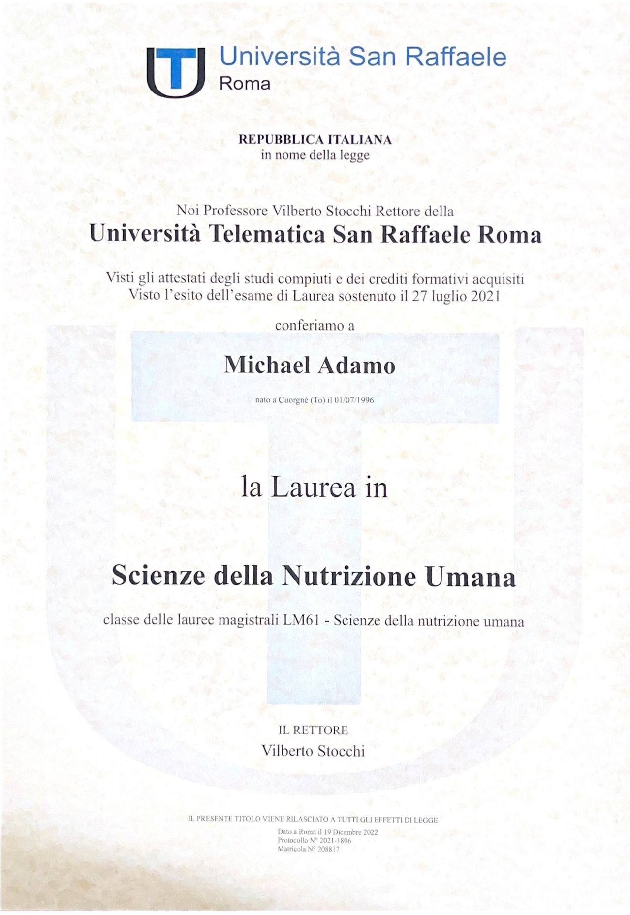 Sono Michael Adamo, biologo nutrizionista specializzato in Scienze dell'Alimentazione Umana e in Nutrizione Sportiva.