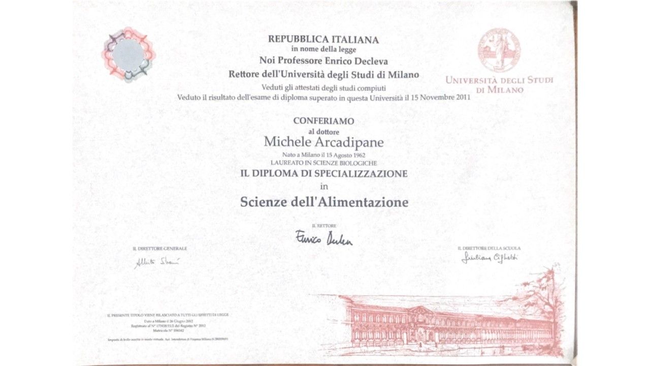 – specializzazione in Scienze dell’Alimentazione (Università degli studi di Milano. Facoltà di Medicina e Chirurgia. a.a. 2008 – 2011)